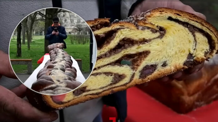 Şi românii au fost încântaţi de delicatesa uriaşă, mai ales că reţeta respectă tradiţiile. Cozonacul este umplut cu nucă, rahat şi cacao. La târg, preţul unui kilogram este de 90 de lei.