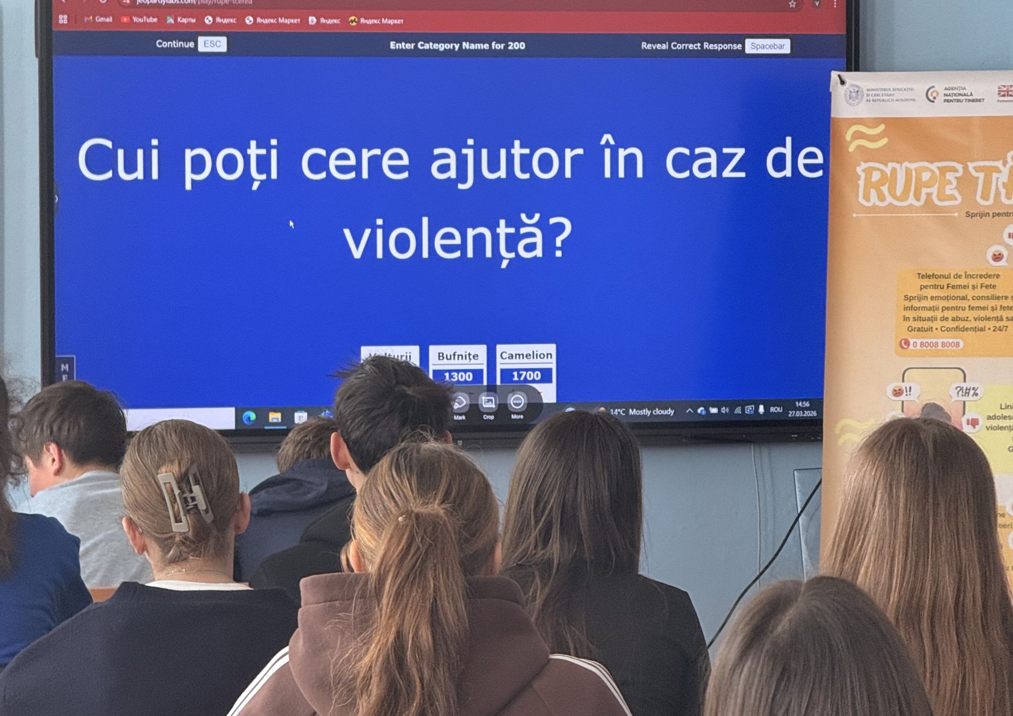 În acest context, recent, în Gimnaziul „Boris Coșciuc” din satul Dominteni, s-a desfășurat o activitate în cadrul proiectului „Rupe Tăcerea”, dedicată prevenirii violenței.