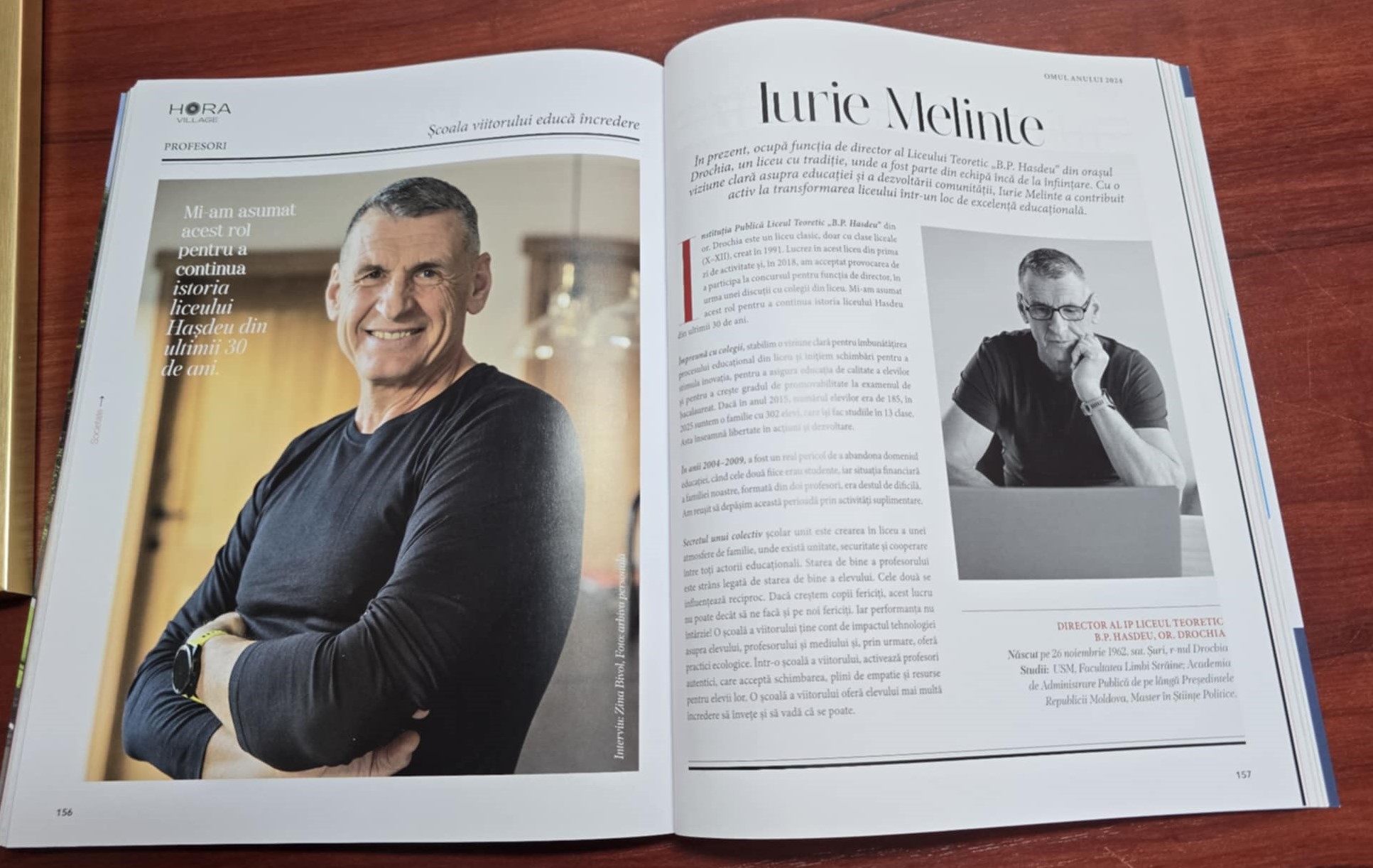 Am fost onorată să susțin acest interviu cu domnul Iurie Melinte, profesor de limba franceză, directorul Liceului Teoretic „B.P.-Hasdeu”, promotor al stilului de viață sănătos, dumnealui fiind și campion la cursele de alergări; soț, tată și bunel – model de sacrificiu și dedicație.