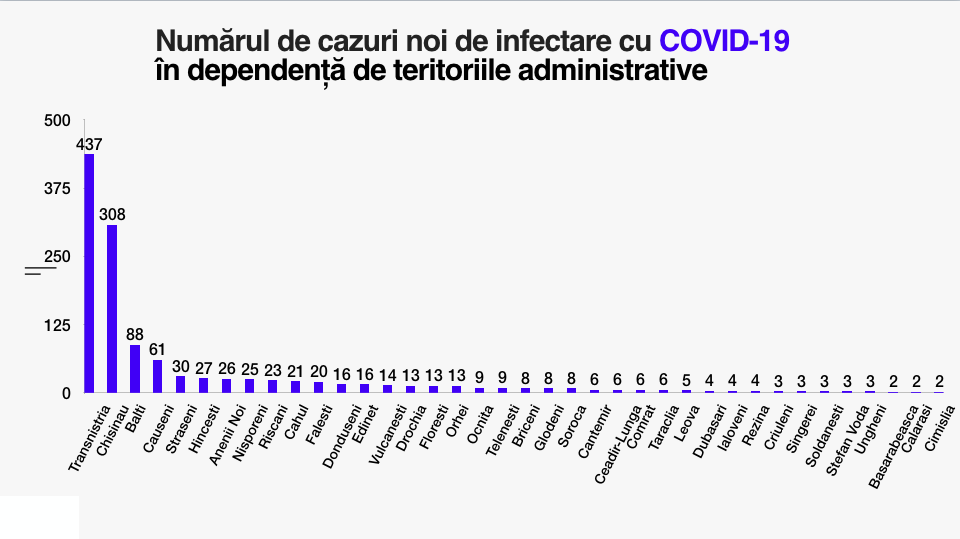 Din numărul total de cazuri, 16 sunt în rândul lucrătorilor medicali: (7-medici, 5-asistenți medicali, 4-personal auxiliar). În raionul Soroca au fost înregistrate 6 cazuri de infectare.