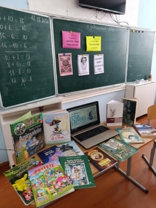 În aceeași atmosferă caldă, Biblioteca a desfășurat activități similare și pentru copiii de la IET Nr. 1 Racovăț. Cei mici au ascultat poezii, au recitat din creația poetului și au participat la jocuri interactive care le-au pus la încercare cunoștințele și spiritul competitiv. Audierile muzicale – precum bine cunoscutele cântece „Maria Mirabela” și „Fuga-fuga” – au completat programul, creând o atmosferă veselă și prietenoasă, potrivită vârstei lor.