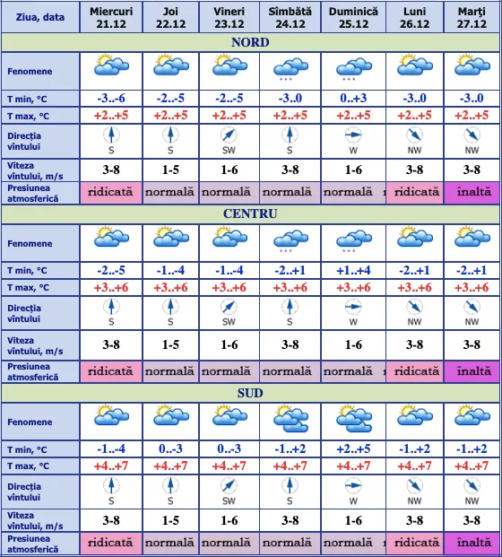 SorocaMeteoUtilitare Ziua PLUS și noapte MINUS, astăzi și în următoarele două zile De către OdN - 21 decembrie 2022 0 935 Meteorologii prognozează pentru astăzi, 21 decembrie, cer variabil în țară și până la +5 grade Celsius și până la -5 grade Celsius noaptea, în raioanele de nord. Aceleași valori termice vom avea și în următoarele două zile. Similare